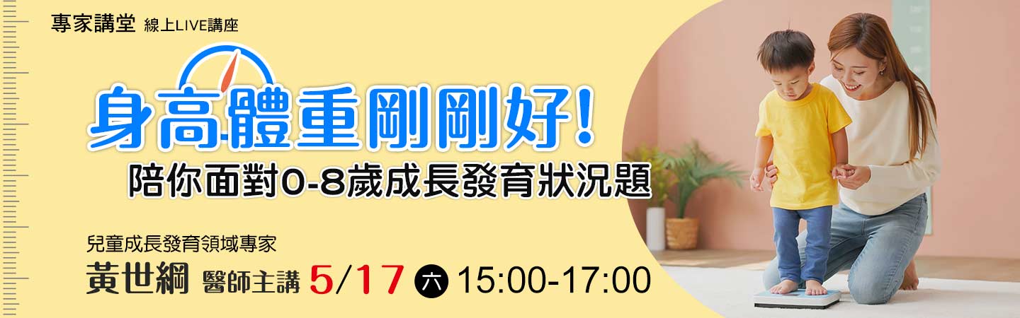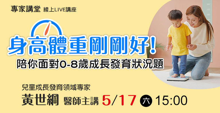 【直播回放至5/27】身高體重剛剛好!陪你面對0-8歲成長發育狀況題/黃世綱醫師主講
