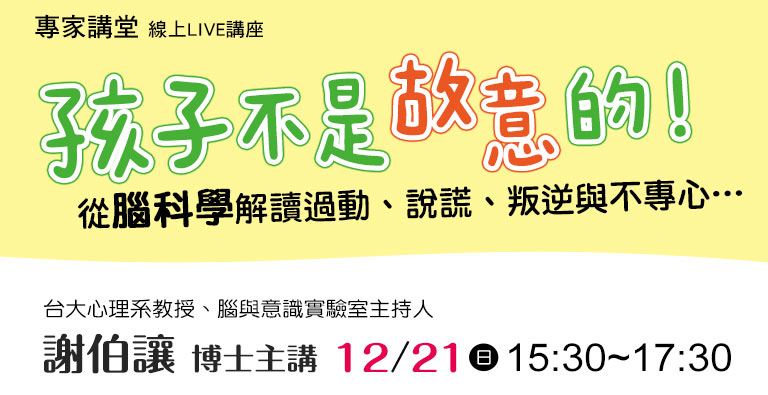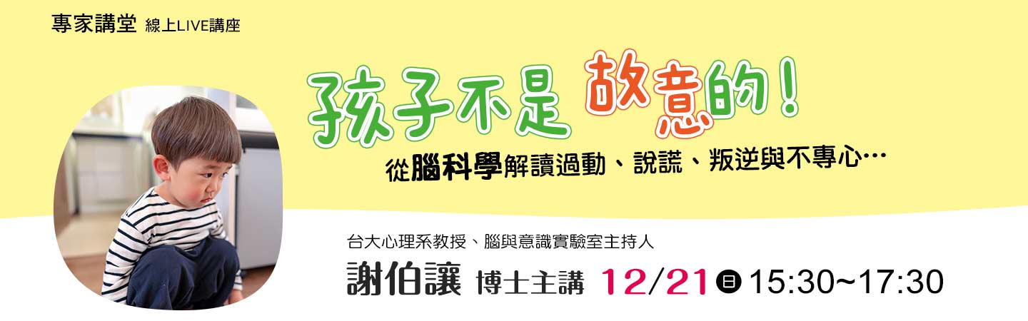 【信誼專家講堂】孩子不是故意的!從腦科學解讀過動、說謊、叛逆與不專心…/謝伯讓博士主講